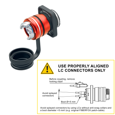 得益于扩束技术和精密的光学校准,连接系统对灰尘,泥土,液体和其他污染有着很高的免疫 FIBERFOX briDge 底座连接器是第一个将标准的LC 跳线电缆转换成扩束解决方案的。它作为一个“直通器”,适配所有标准 D 型外壳。